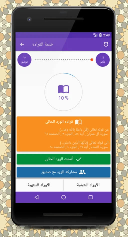 الرجوع مرة أخرى للسورة بكل سهولة : تم اضافة إمكانيات مذهلة في الإصدار الأخير وهي تعمل على حفظ مكان التوقف في الآية والرجوع لها مرة أخرى دون الأحساس بالتشويه، فقط كل ما عليك فعله لتنفيذ هذه الخطوة اضغط في الجزء الذي تريد الرجوع إليه مرة أخرى في وقت لاحق ثم أضغط على القائمة واختار مرجعيات ليتم اضافة هذا الجزء بكل سهولة إلى المرجعيات حتى يمكنك الرجوع مرة أخري بكل سهولة إلى نفس الجزء الذي توقفت فيه، دون البدء من بداية المصحف، فهي اضافة رائعة تعمل ايضاً على مساعدتنا في ختم القرآن الكريم .